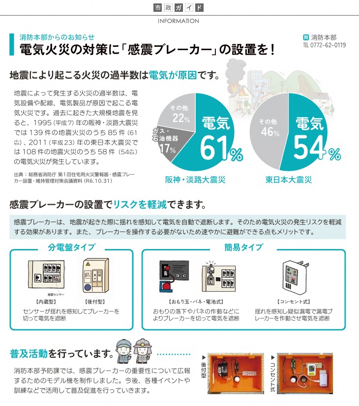 電気火災の対策に 「感震ブレーカー」の設置を! (京丹後市広報紙2026年1月号掲載) |