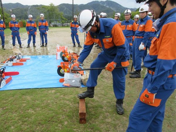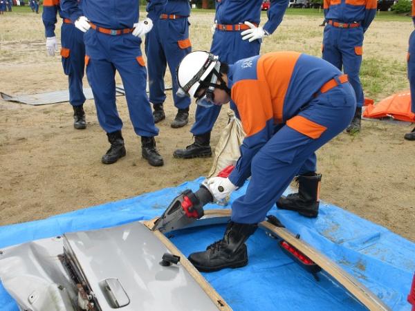 京丹後市消防団は9月21日、五箇グラウンドにて「救助資機材取扱訓練」を実施しました。