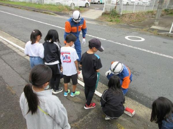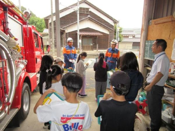 大宮南小学校の3年生が、消防団のことを学ぶために消防団車庫を見学に訪れました。