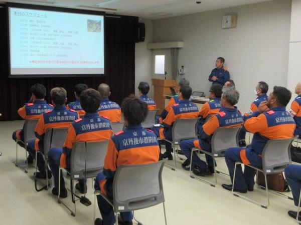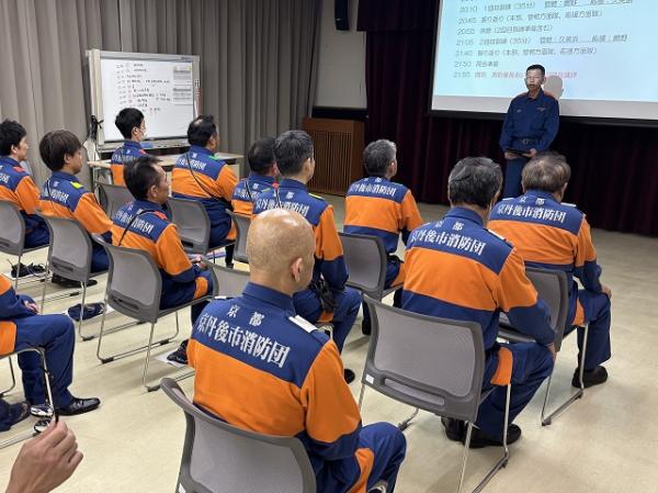 午前中は教室での講義が行われ、消防団員の職責や心構え、火災現場での安全管理などについて学びました。