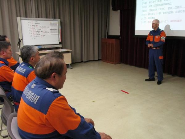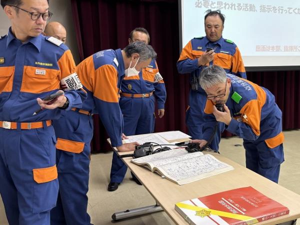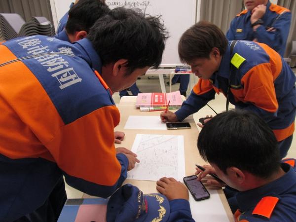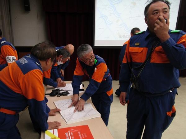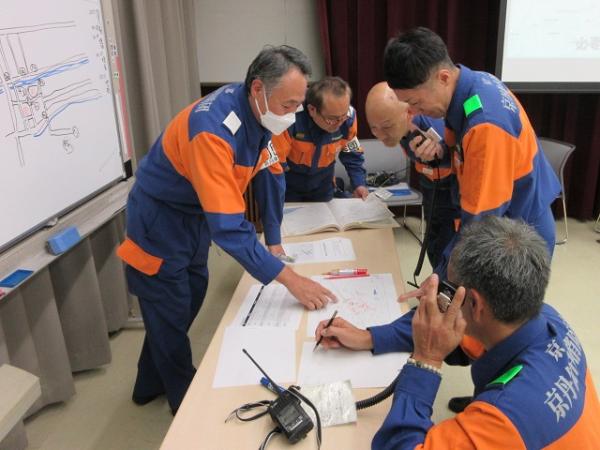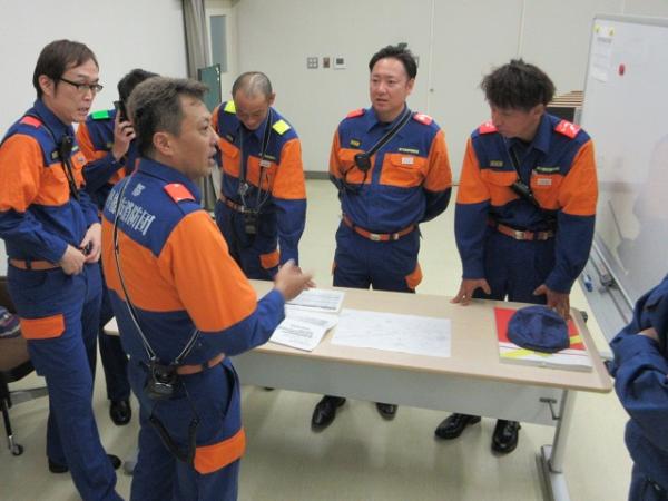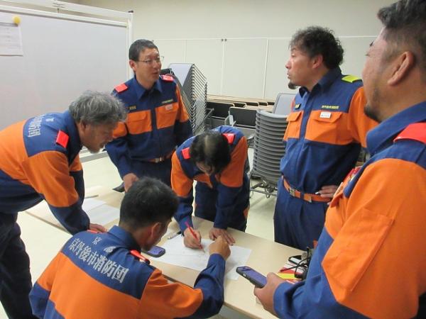 参加団員は災害現場をイメージしながら真剣に議論し、互いに相談し合いながら対応を考えるなど、本番さながらの訓練となりました。