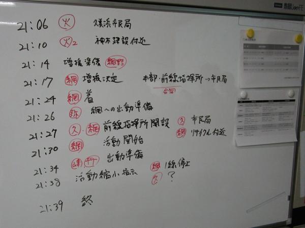 また今回は、現場指揮本部の活動要領にも重点を置き、指揮命令系統の確認や指揮図板の作成に取り組むとともに、消防署との連携強化を図りました。