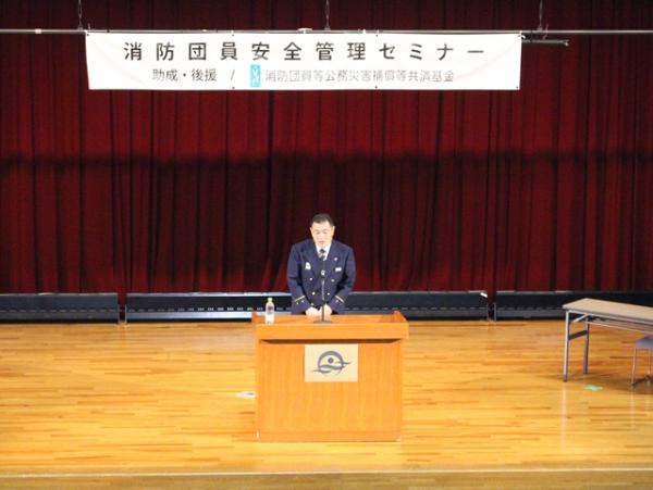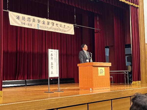 日頃の消防団活動を通して、これまであまりお話しする機会がなかった近所の方々と自然に交流できるようになったこと、そして地域のつながりや支え合いの大切さを、自身の体験を交えて語りかけました。