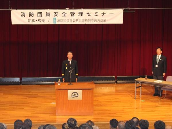 式典では、優良消防団員165人の表彰や来賓による祝辞が行われ、中山市長は「消防、行政、市民が一体となり、安全・安心なまちづくりをさらに進めていきたい」と述べました。廣野消防長も「安全で安心な京丹後市を目指し、さらなる努力を重ねる」と訓示し、川浪消防団長は「市民の生命や財産を守る使命を果たすため、組織力を強化し進化を続ける年にする」と決意を語りました。