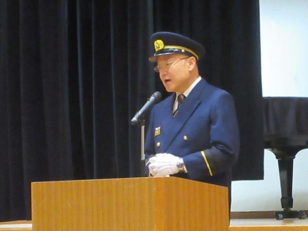 28日は、警戒出発に先立ち、峰山総合福祉センターホールにおいて、市長をはじめとするご来賓の皆様から激励をいただき、団長からは「この年末を『火災ゼロ』で締めくくろう!」との訓示がありました。