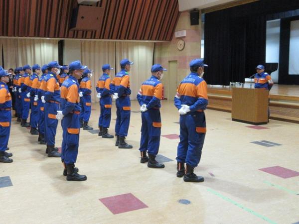 式典では、優良消防団員165人の表彰や来賓による祝辞が行われ、中山市長は「消防、行政、市民が一体となり、安全・安心なまちづくりをさらに進めていきたい」と述べました。廣野消防長も「安全で安心な京丹後市を目指し、さらなる努力を重ねる」と訓示し、川浪消防団長は「市民の生命や財産を守る使命を果たすため、組織力を強化し進化を続ける年にする」と決意を語りました。