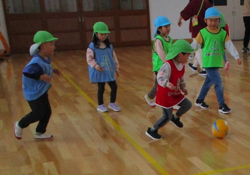 2月10日火曜日、今年度最後のサッカー教室(6回目)がありました。どのクラスの子ども達もボールの扱い方に慣れ、コーチの話や笛の合図を聞きながら、楽しく体を動かす事が出来ました。また、コーチに親しみを感じている子どもたちは、「来年も来てね。」「小学校にも来てくれる?」と名残惜しそうにしていました。