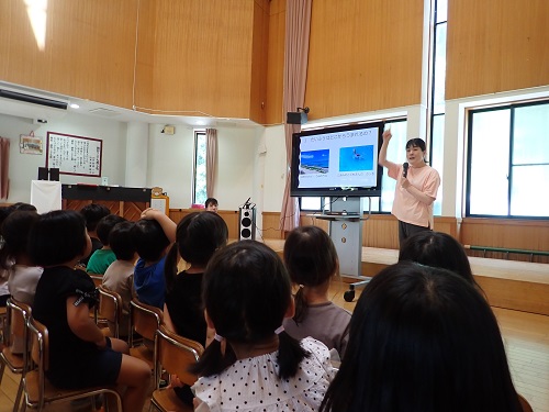 「早寝・早起き・朝ごはん」の大切さについててお話をしていただきました。どの学年の子どもたちも興味をもって話を聞いていました。