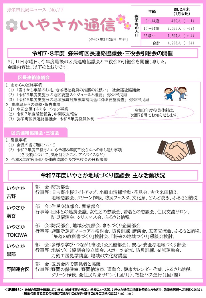 いやさか通信第77号(令和8年3月25日発行) (PDFファイル: 853.8KB)