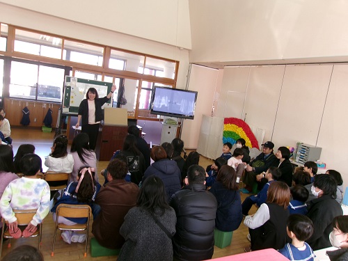 「早寝・早起き・朝ごはん」の大切さについててお話をしていただきました。どの学年の子どもたちも興味をもって話を聞いていました。