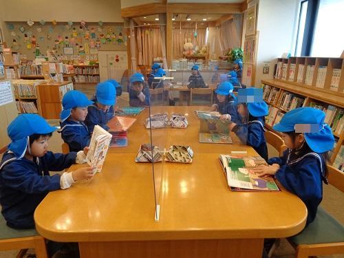5歳児そら組は、網野図書館に絵本を借りに出かけました。自分の興味のある絵本を手に取り「どれにしようかな?」と悩む姿も見られましが、それぞれお気に入りの1冊を見つけることができました。このような体験を通して、自分で考え、選び、決める力が少しずつ育っています。絵本との出会いは、子どもたちの心を豊かにする大切な時間でもあります。ご家庭でも、是非親子で図書館に足を運び、お子さんと一緒に絵本を選ぶ時間を楽しんでみてください。