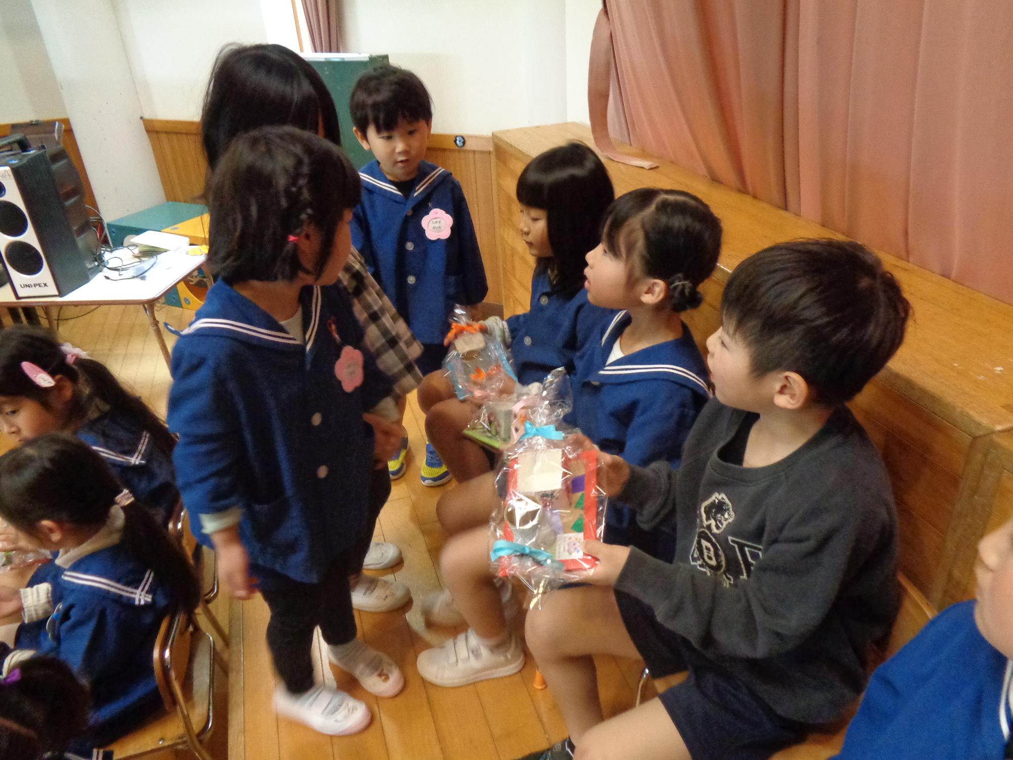 最後に3.4歳児が一人ひとりに思いを込めた言葉を添え、プレゼントを渡しました。