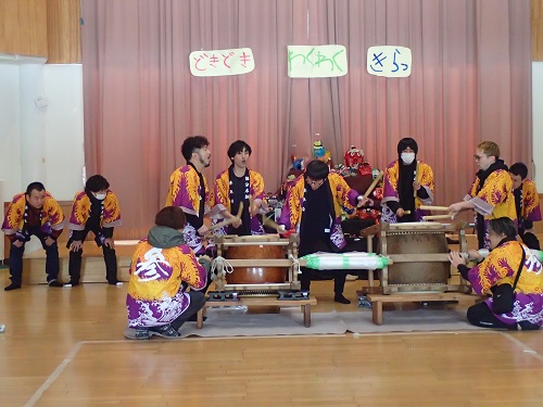 その後は、浅茂川節分太鼓の『参平会』の皆様による迫力ある太鼓の演奏をしていただきました。地域で大切にされている伝統に触れる貴重な体験となりました。