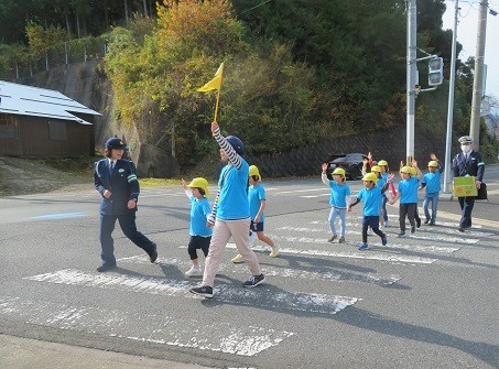年末の交通事故防止府民運動のスタートを飾る式典に、3.4.5歳児が参加し、元気いっぱいの歌と踊りを披露しました。また、地域のスーパーの店頭では、買い物客に向けて交通安全を呼びかける啓蒙活動も行いました。今回の活動を通して、横断歩道の渡り方やチャイルドシートについての大切さを再確認する機会となりました