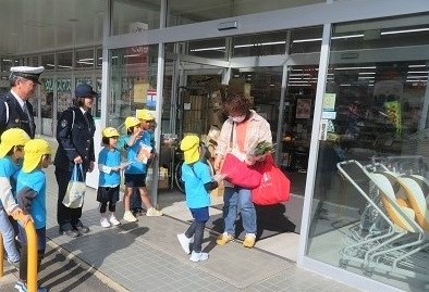 4.5歳児の遠足では、地域をめぐり、人の優しさに触れたり、住んでいる町の良さを再発見したすることができました。