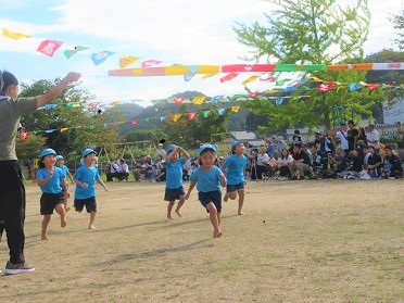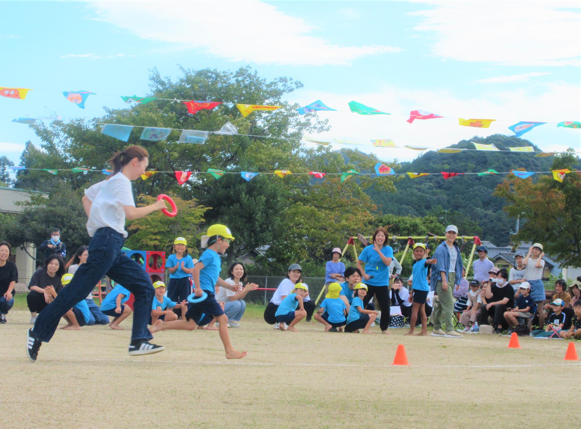 一生懸命走る小学生の姿は、年下の園児にとってあこがれの存在!「がんばれー!」と声を届けていました。人を応援する温かい気持ちや、自分たちも頑張ろう!と前向きな気持ちをもたせてもらい、運動会目前の子どもたちにとって、とてもいい刺激になりました!
