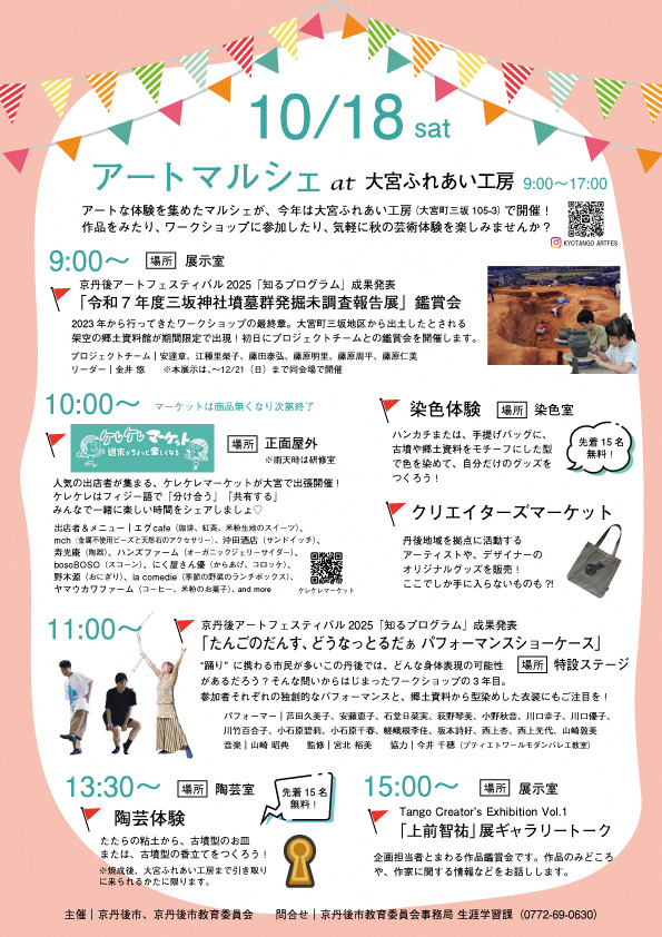 市民団体によるサークル活動から、丹後を拠点に国内外で活躍するアーティスト、クリエイターによるプロジェクト、民間の美術館や行政による文化芸術事業、またそれら文化芸術活動の素地となる丹後の貴重な歴史、文化財などを含め、その主体やジャンルの多様性を一体的に集約したプログラムです。
