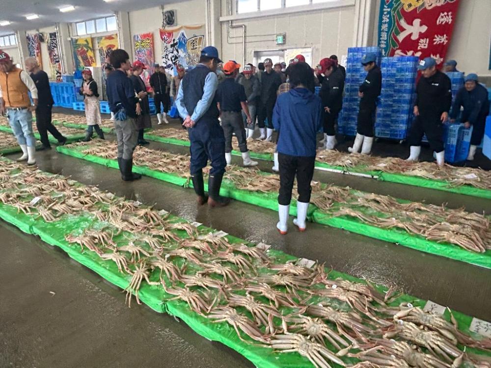 網野地方卸売市場では、漁船1隻で雄324杯、雌4,175杯が水揚げされ、こちらも平年並みの状況となりました。