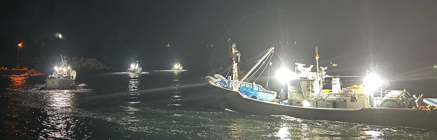 間人漁港では、6日午前0時の解禁に向けて出港する船を見送ろうと、多くの方が集まりました。5日夜9時、汽笛が鳴り響く中、5隻の底曳網漁船が漁場へと出港しました。