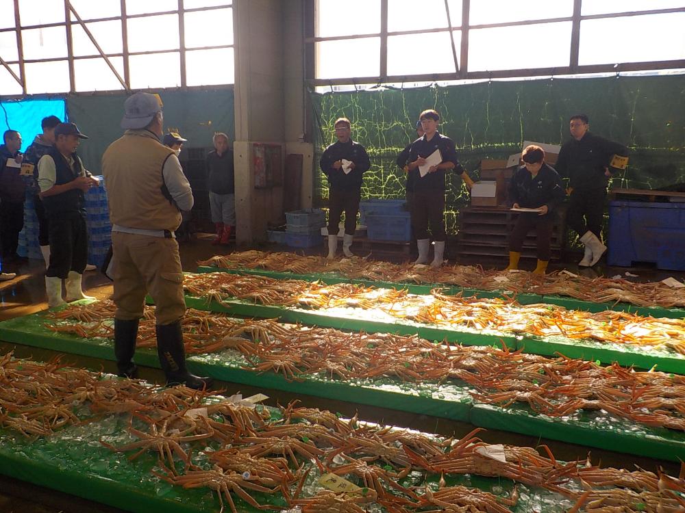 【網野地方卸売市場で競り落とされていくズワイガニ(雄)(大善ガニ)】